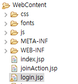이렇게 css, fonts, js 폴더를 WebContent에 넣어주도록 합니다.